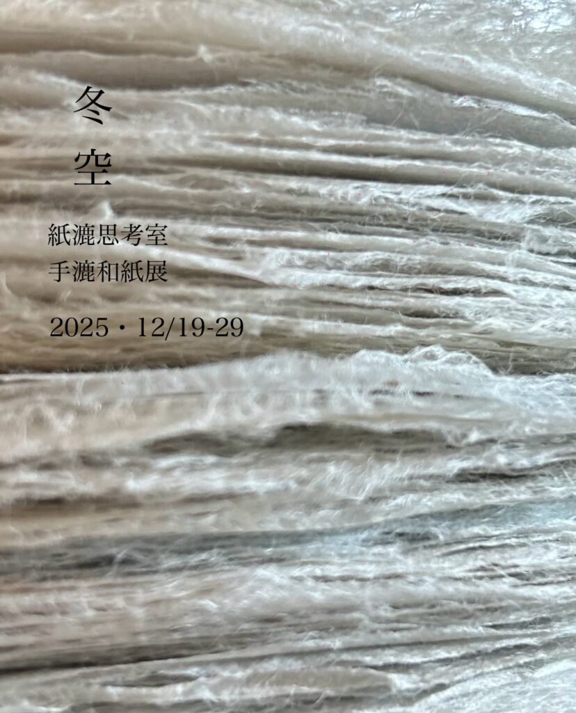 今年最後の木蓮での企画展は、紙漉思考室 前田崇治さんの手漉き和紙の展示を開催いたします。ぐっと寒さが増す年末の空は、ひかりも寒々しくブルーグレーの空。太陽が顔を出さない日は灰色の世界が空を覆う。冬の季節の空は、毎日違うグレー色の空である。白とも黒とも言えない曖昧な色を、色んな形にして漉いて頂きました。そんな空の色の様ないろんな表情豊かな手漉き和紙、書きものとしての紙ではなく、カーテンや天蓋、壁や天井など吊したりはったり、床に敷いたり、座布団やランプのシェード、時計やコースターなど。色んな使い方で、紙漉思考室前田さんのあたたかな手触りの手漉き和紙の可能性を是非、見にいらしてください。